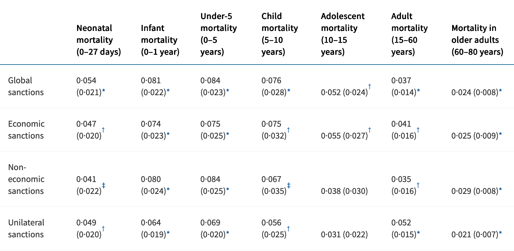 Sanctions have substantial adverse effects on public health, with a death toll similar to that of wars. Our findings underscore the need to rethink sanctions as a foreign-policy tool, highlighting the importance of exercising restraint in their use and seriously considering efforts to reform their design.